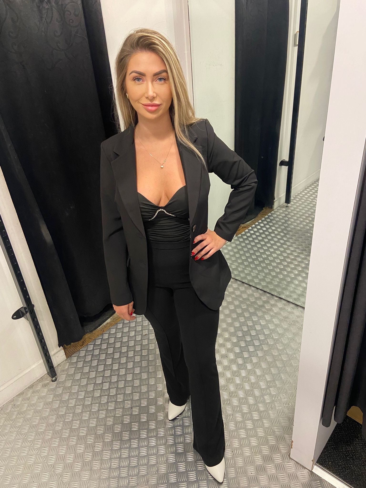 Leuk te dragen met een zwarte flared of oversized blazer