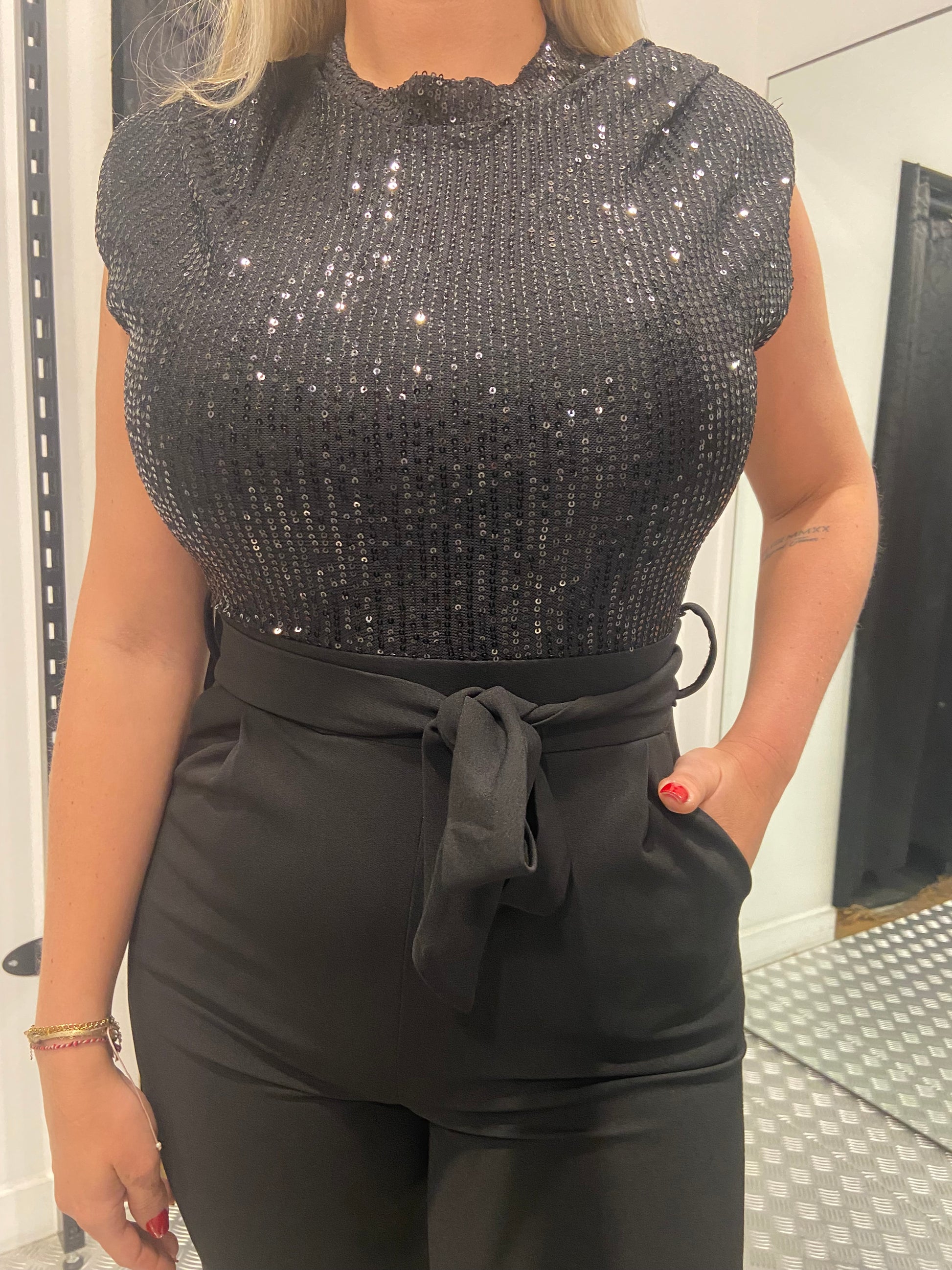 Black paillet jumpsuit