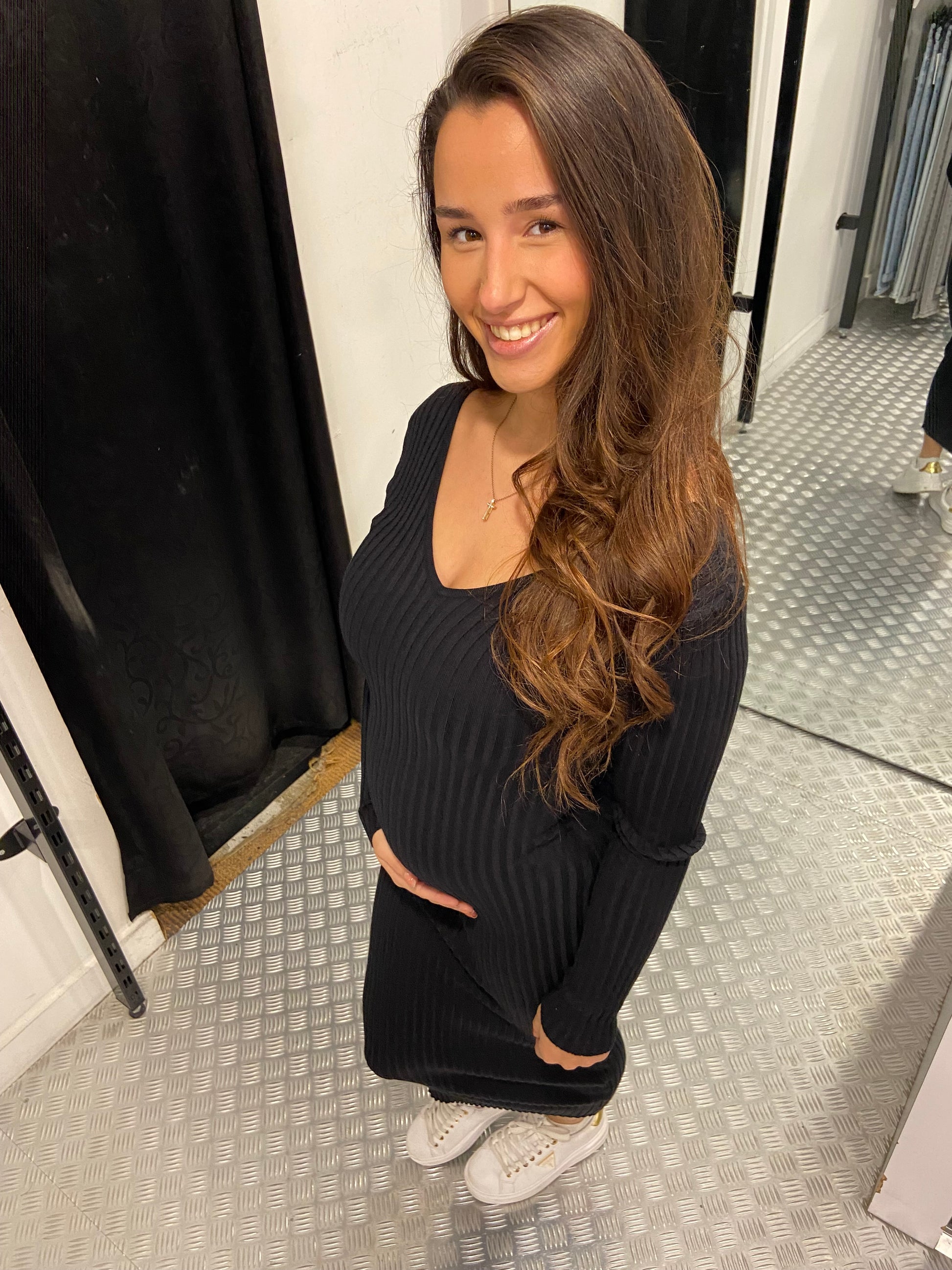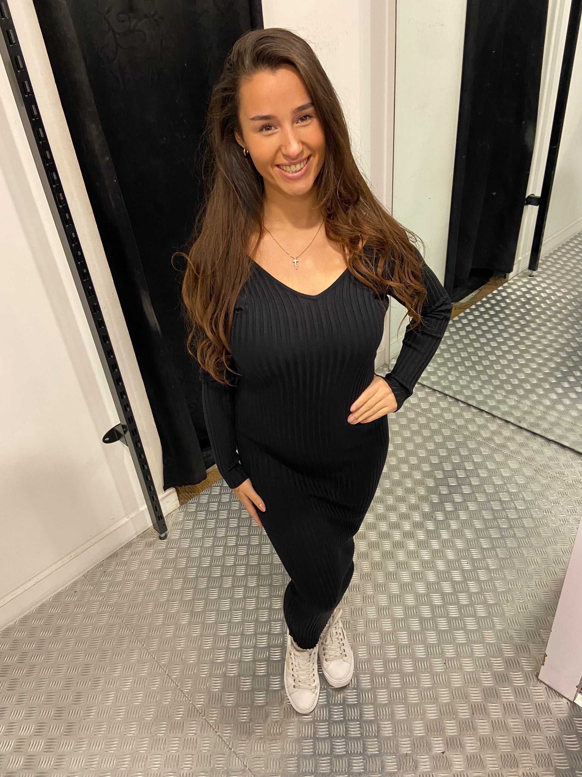 De jurk is 1 maat, enorm rekbaar en kan worden gedragen t/m maat 42