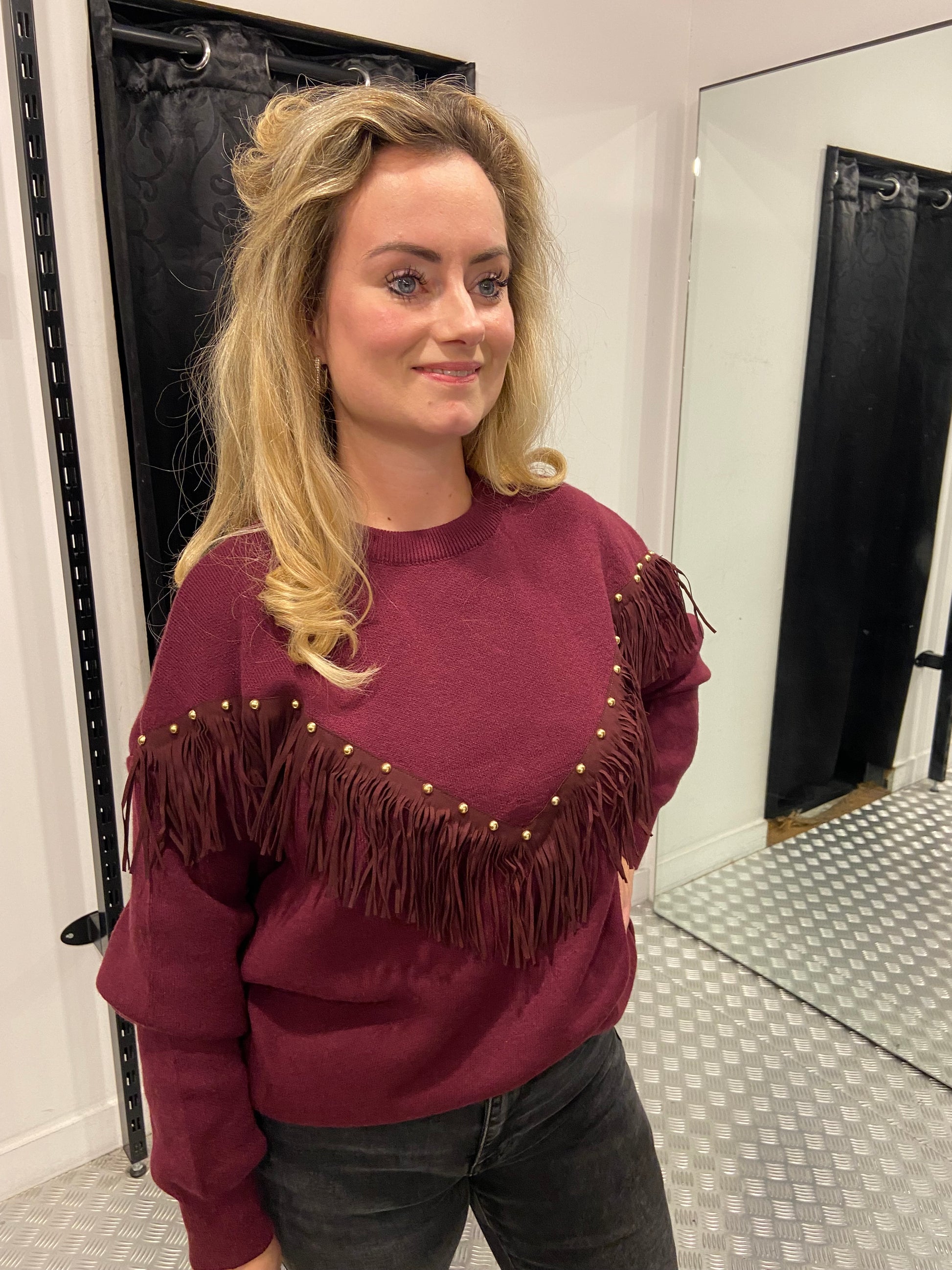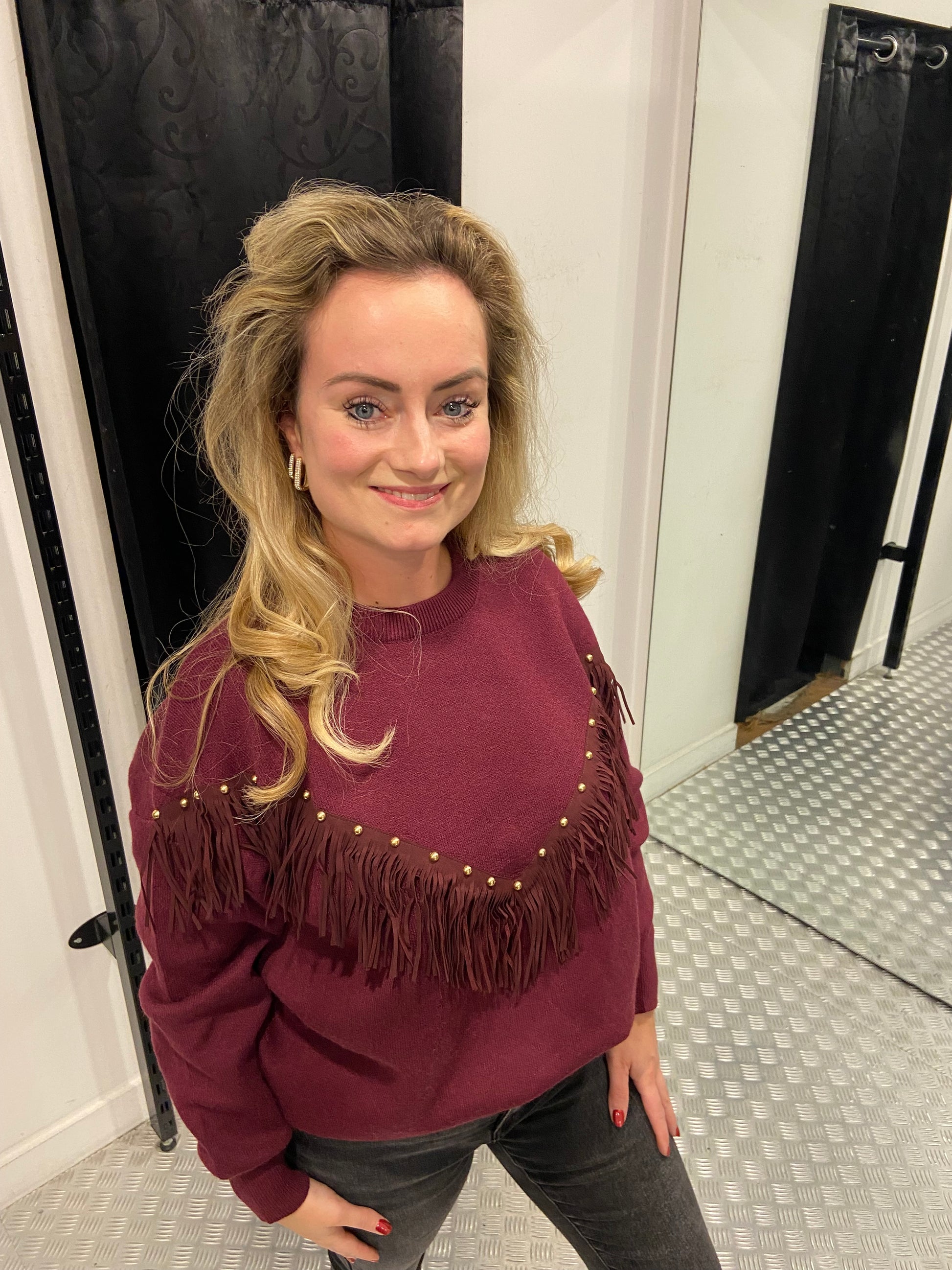 Wijnrood bohemian trui