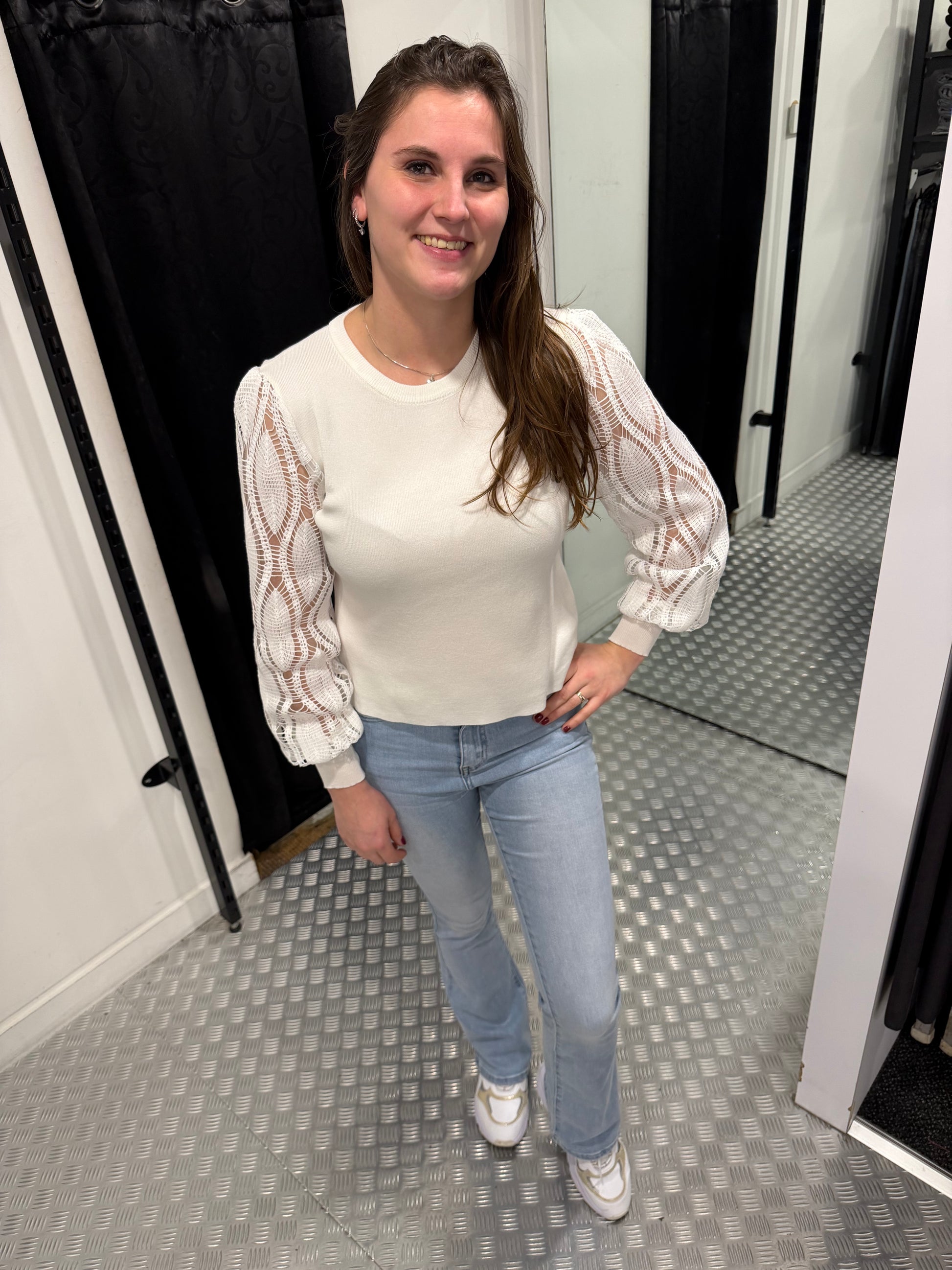 Witte top kanten mouw